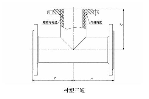 鋼襯塑三通尺寸測量為主管法蘭端面襯塑層到主管另一法蘭端面襯塑層的距離,支管為主管中心距離到支管法蘭端面襯塑層距離,如下圖所示: